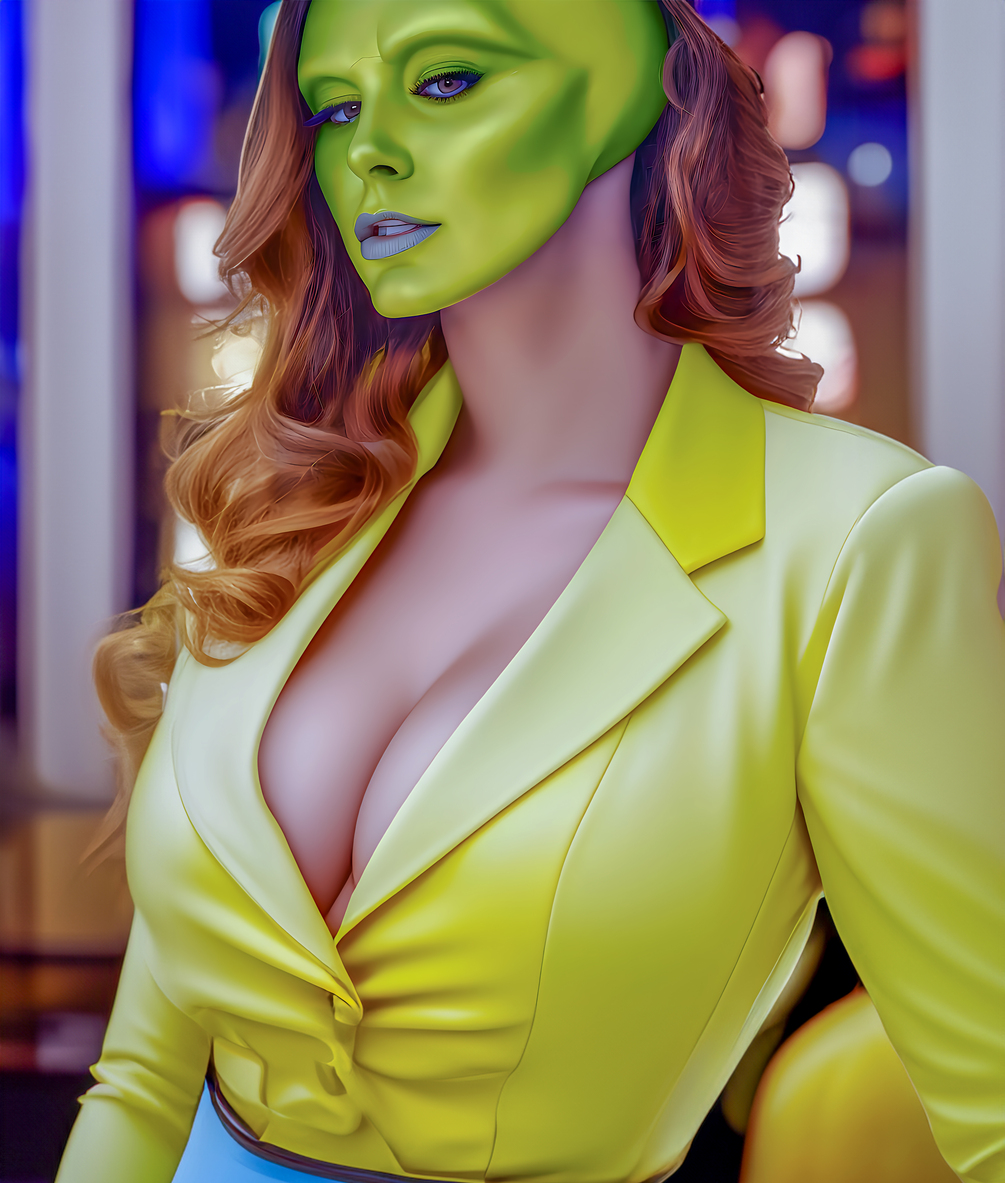 This pack contains Jenna Ortega as Gothic She Mask, Cute Asian She Mask at the the Coco Bongo, Medieval She mask knight, night pool party She Mask and BONUS Vivia The Jade visits Cara's office.